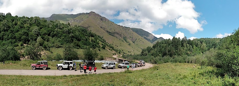 HUNTER здоров, стояли в районе второго нарзана ближе к реке, там стояночка в кустах есть удобная, столики/лавочки, с дороги не видно..